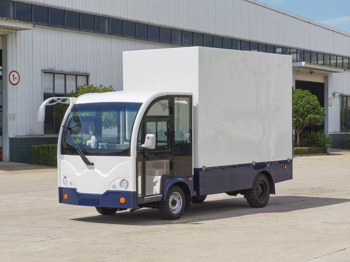 3T升降尾板货箱T封闭上白下警蓝超高货箱